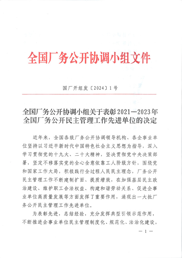 沈陽隆基電磁科技股份有限公司榮獲2021—2023年全國廠務公開民主管理先進單位。 2024-06-07
