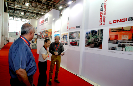 這是冶金行業(yè)內(nèi)世界第二大展覽會,每兩年舉辦一次。來自德國、意大利、西班牙、美國、中國臺灣等國內(nèi)外近兩千家企業(yè)參展,展會規(guī)模為繼德國杜塞爾多夫冶金、鑄造展之后本領(lǐng)域內(nèi)全球第二大展會。此外,國內(nèi)知名的大型鋼企如:包鋼、鞍鋼、首鋼、武鋼、太鋼、中鋼設(shè)備、東北特鋼等都到場參展,這些大型鋼鐵集團(tuán)同時也是隆基的合作伙伴。隆基在展會上現(xiàn)場演示了鋼渣帶磁機(jī)及全自動永磁起重器,鋼渣、水渣產(chǎn)品展柜吸引了大批專業(yè)觀眾前來咨詢,行業(yè)產(chǎn)品規(guī)劃及現(xiàn)場案例讓觀眾們了解到隆基產(chǎn)品的現(xiàn)場實際應(yīng)用情況,工作人員與眾多冶金行業(yè)客戶進(jìn)行了深入交流,得到用戶的一致好評。