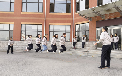 比賽中,隊員們精神抖擻、意氣風發,伴隨跳繩擦過地面的清脆聲,盡情展現著輕盈風姿。大家配合默契,搖繩的隊員控制節奏,控制力道,跳繩的選手調節距離,調諧頻率,一鼓作氣,場下觀眾掌聲雷動,歡笑聲、加油助威聲此起彼伏,掀起了一波又一波比賽的高潮。