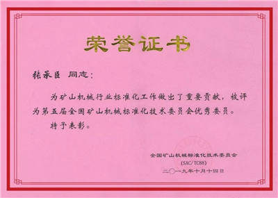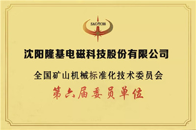 經層層推薦評審,憑借在礦山機械制造領域的不斷探索和在礦山機械行業標準化體系建設方面的卓越貢獻,沈陽隆基成為全國礦山機械標準化技術委員會第六屆委員單位,董事長張承臣獲評第五屆全國礦山機械標準化技術委員會優秀委員。