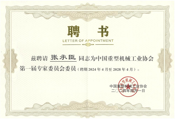 當(dāng)選中國重型機械工業(yè)協(xié)會第一屆專家委員會專家