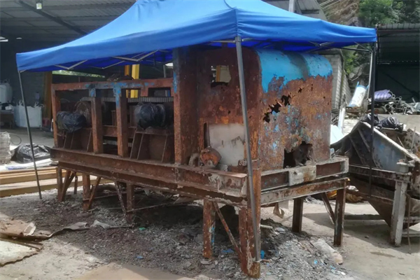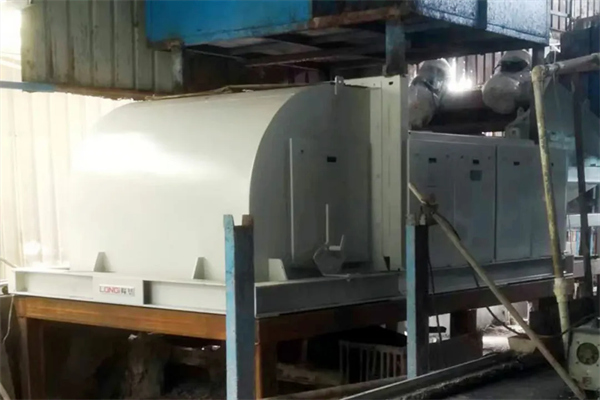 嶄新的升級款渦流分選機安裝的同時,舊款設備被拆卸了下來。從舊設備破損的漆面來看,這臺設備著實“有些年頭”,它是沈陽隆基在爐渣處理領域應用的首批渦流分選機,是已服役9年,連續工作70000+小時的“功勛老將”。