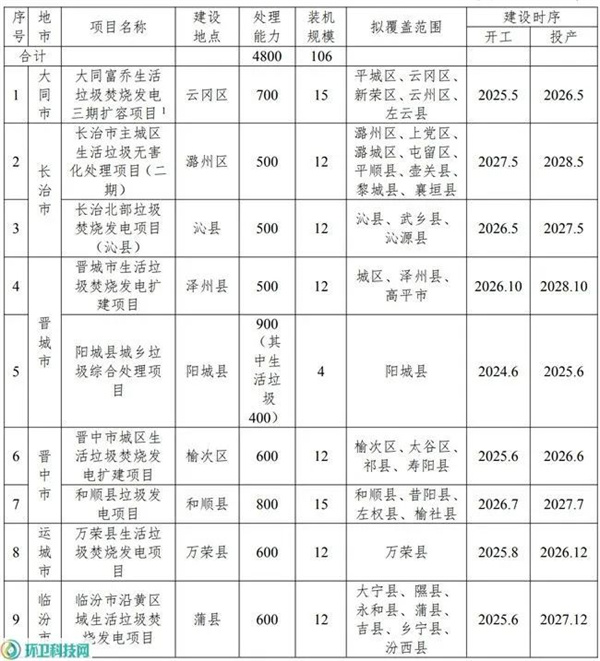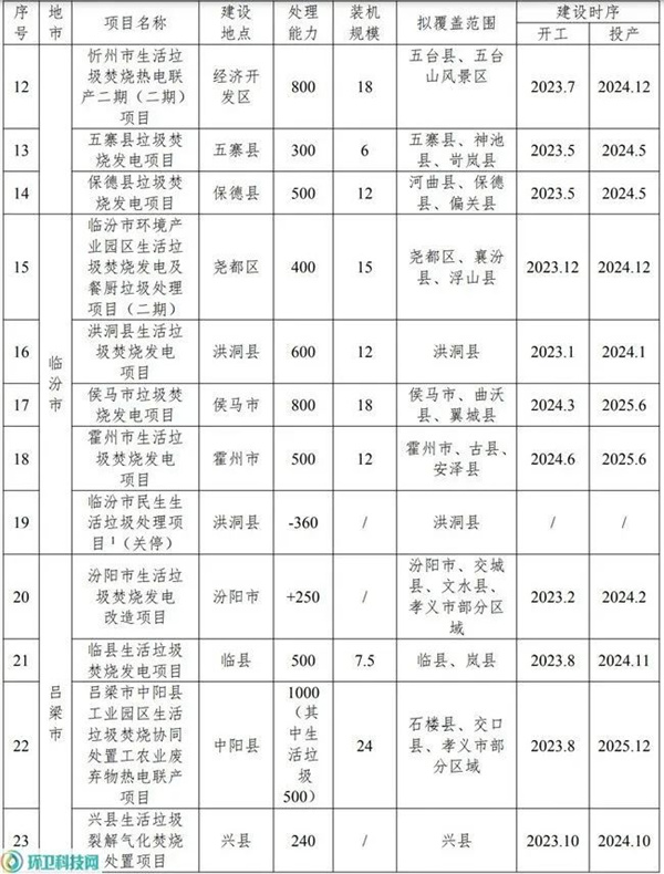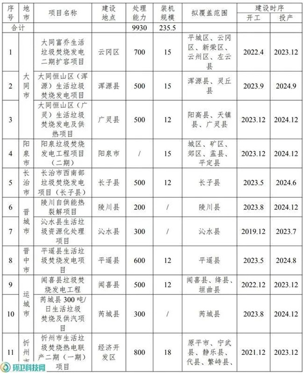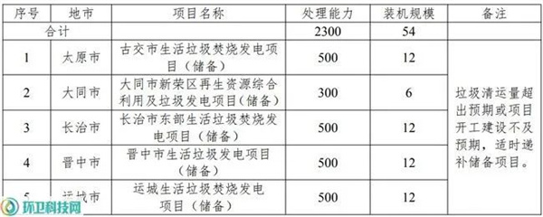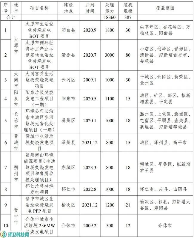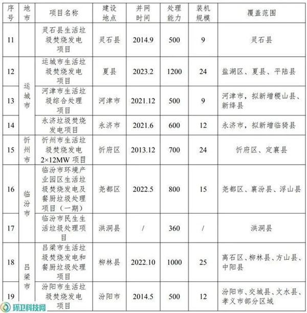 附:山西省存量垃圾焚燒項目及2030年前規劃建設的垃圾焚燒項目